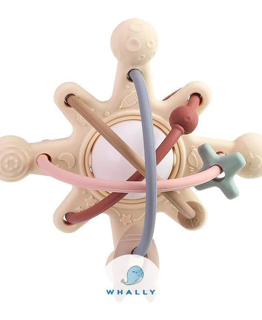 RAKETEN är den perfekta bitleksaken för barnets lilla mun när de börjar få tänder. RAKETEN har dessutom en skallra i mitten som gör den extra rolig att leka med. Skallran låter dovt så det blir inga höga ljud när barnet leker. Tips är att lägga in den i kylen alternativs frysen för att den ska bli riktigt kall och dämpa ömmande tandsprickning. Denna leksak är väldigt rolig att leka med även utan tandsprickning!