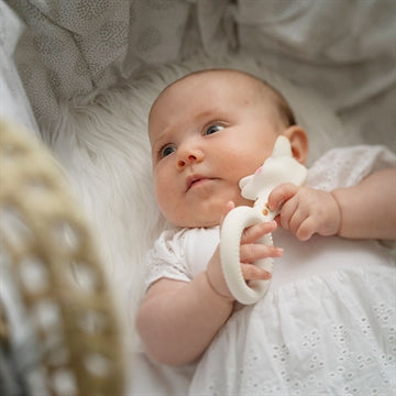 Mild och behaglig att tugga på. Lätt att ta tag i och hålla för små fingrar. Många delar att tugga på och undersöka.