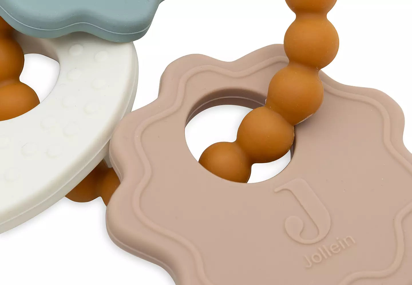 Denna färgglada nyckelring i silikon är en perfekt leksak för små barn som gärna stoppar saker i munnen – särskilt när tänderna är på väg. Färgerna Wild Rose, Sea Green, Caramel och Nougat gör den extra intressant att utforska.