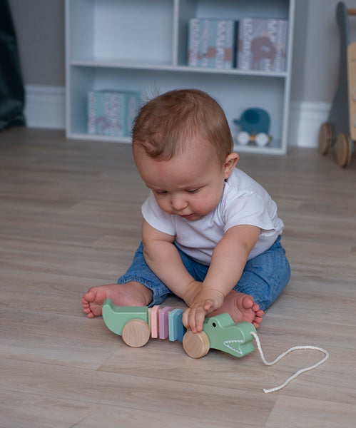 Dragdjur i trä från Jabadabado i form av en krokodil