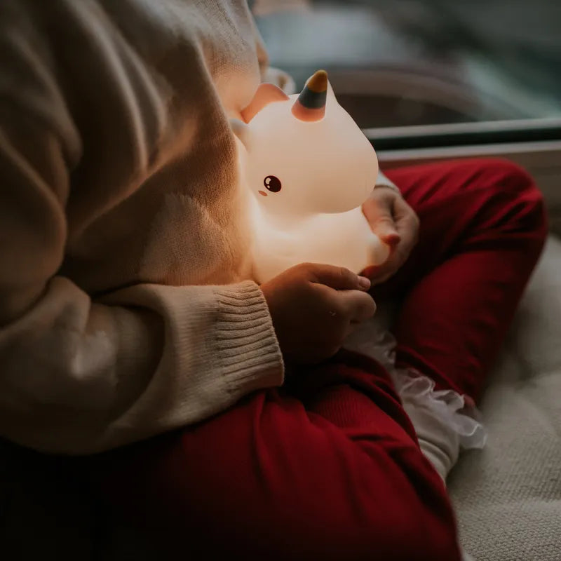 Ledlampa i form av en enhörnings som kan lysa i olika färger