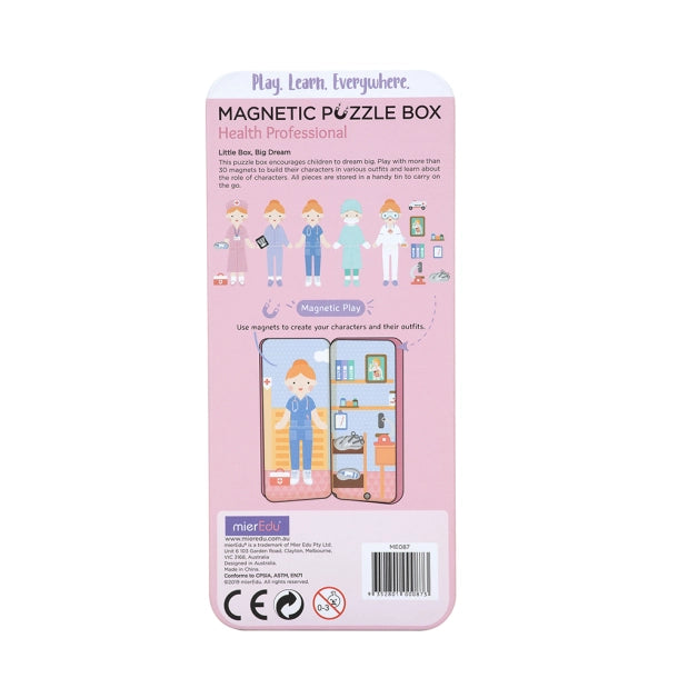 Magnetlåda med sjukvårdstema. Klä karaktären i olika kläder och utrustning för att arbeta på tex operation, röntgen mm
