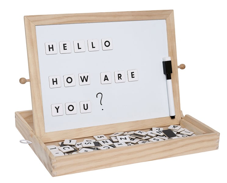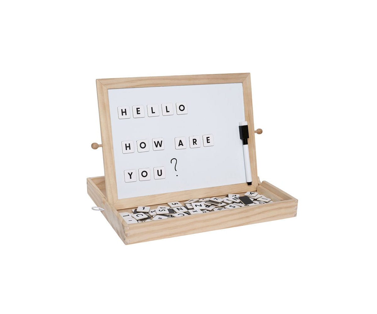 Magnetiska bokstäver och siffror som fäster på tavlan som även fungerar som whiteboard (penna ingår)