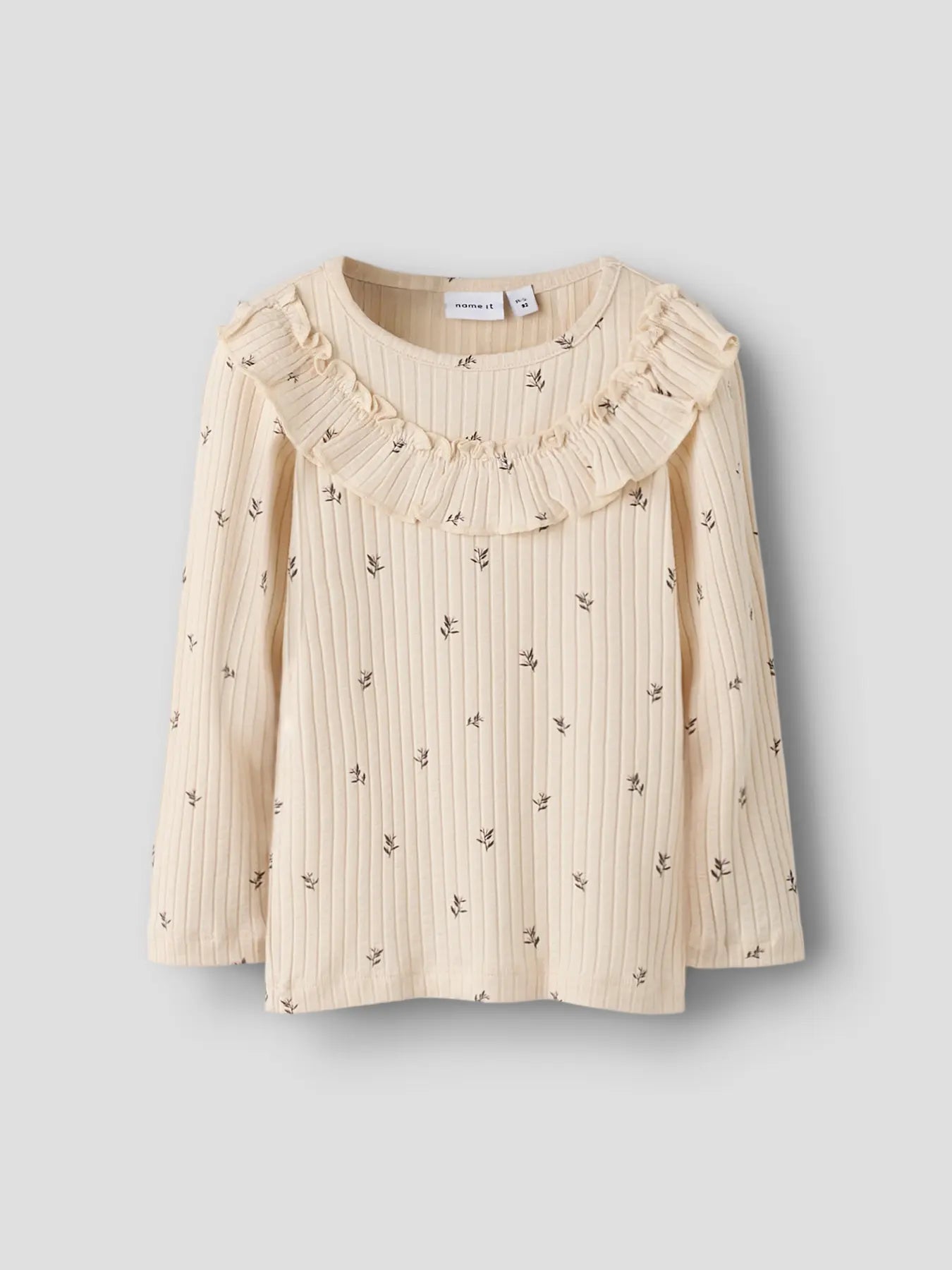 Ribbad kvalité med volang på bröstet